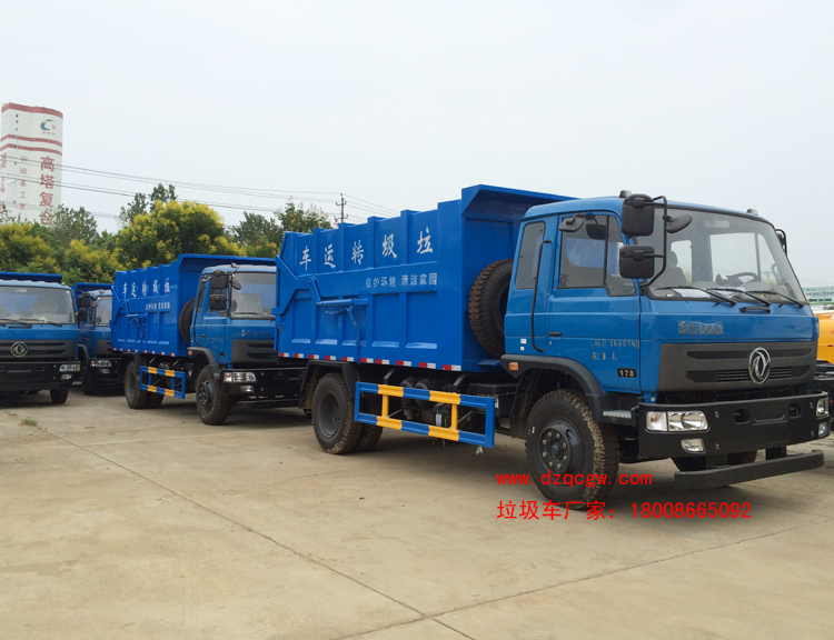 東風單橋對接垃圾車,主要由東風原裝底盤(全國聯保)、箱體(密封式)、取力器、多路換向閥、液壓系統、操作系統等組成。