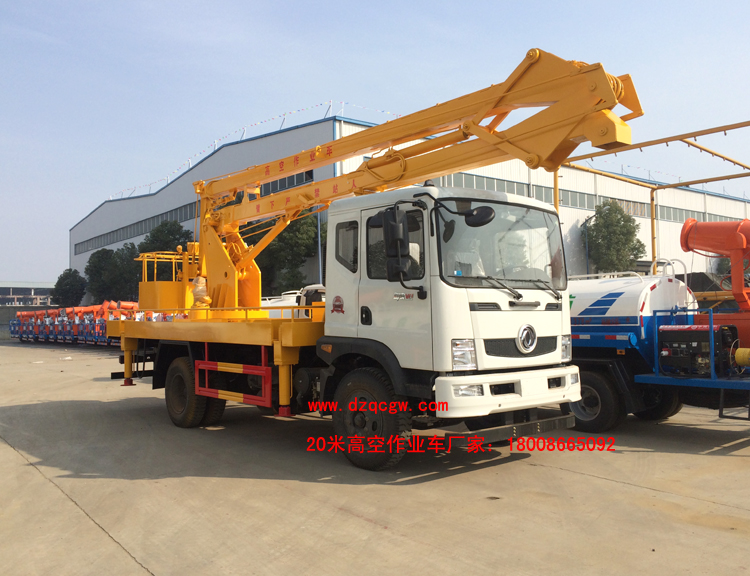 東風御虎18米20米高空作業(yè)車,排半駕駛室,3950mm或4500mm軸距,東風6檔變速箱,3.6噸前橋,8噸后橋,9.00-20輪胎。
