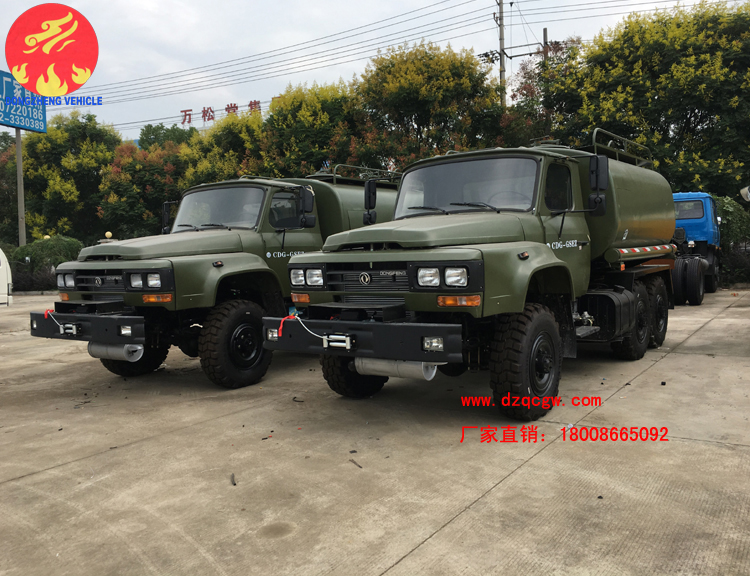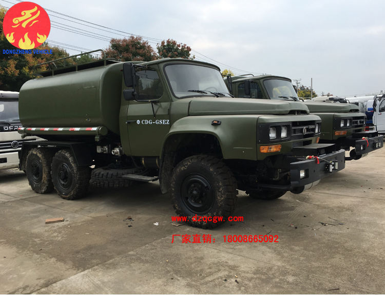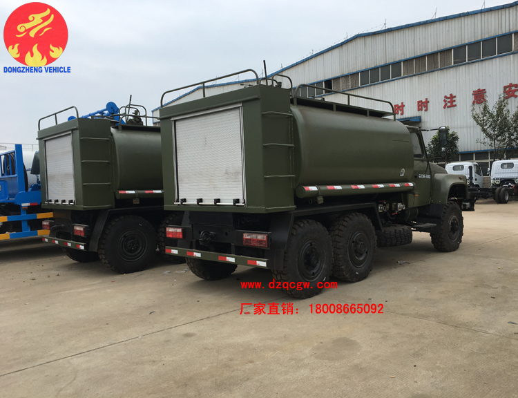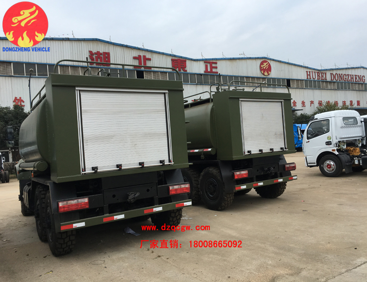 該批油罐車采購東風六驅越野底盤,提供強大的越野和通過性能,油罐上裝提供5-6立方米的汽油/柴油裝載量,配備自動大流量加油機,可以及時為各種車輛填裝燃料,保障各種車輛的正常運行。