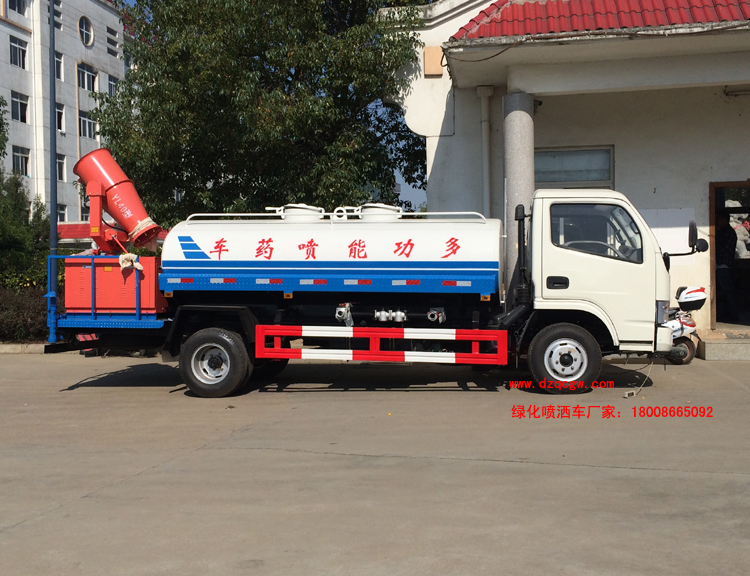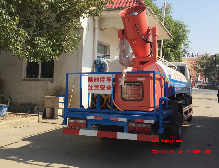 底盤說明:東風福瑞卡單排可翻轉駕駛室,3308mm軸距,多種可選國五發動機,萬里揚5檔變速箱,前橋2噸,后橋4噸,7.00R16鋼絲胎,ABS,方向助力,選裝空調,中控鎖,電動門窗。罐體有效容積:3.78立方米。 專用功能:主要使用于園林綠化,道路綠化帶維護,森林維護,農田打藥,果園打藥等。運輸各種農藥,利用風機原理來達到霧化及噴灑農藥的最優效果。 改裝部分:裝配工作平臺,安裝農藥噴灑專用炮及綠化灑水炮(若有特殊要求還可安裝消防灑水車的消防灑水泵),送藥筒可360度全方位的旋轉,以便各種角度的農作物及植物都能受益。在工作平臺尾部配備專用小發動機組,為農藥噴灑炮提供專一的動力源來達到更好的霧化效果,射程可達到45米,為各種工作環境下的作業提供有效的保障。配備專用灑水泵及灑水系統,可抽水排水,也可通過消防栓進水。 |